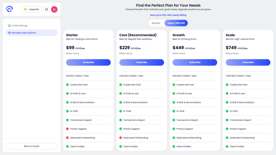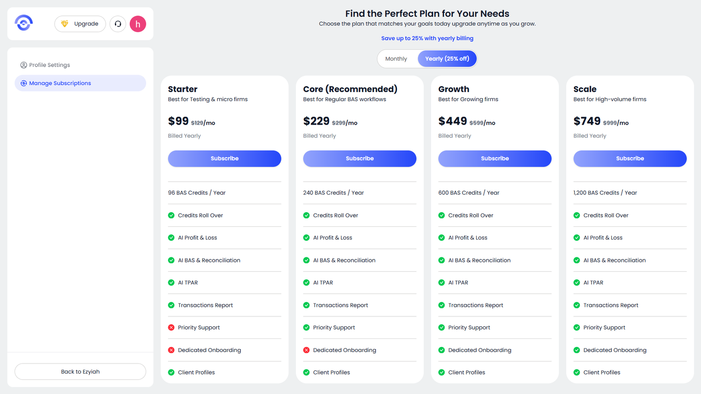 Ezyiah is designed to grow with your firm. You can adjust your capacity at any time to match your client load.