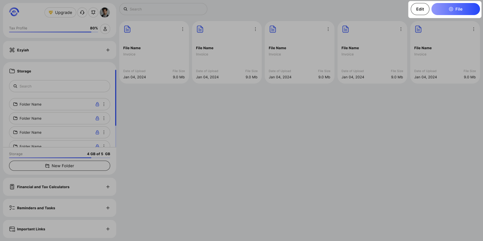 - Go into your storage section in your Ezyiah Dashboard and click on the 'Edit' Button in the top right hand corner next to the '+ File' button.