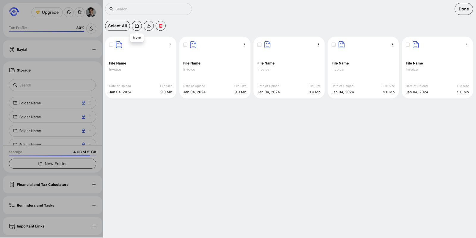 - Upon clicking that, you'll get options to either move, download or delete your files in bulk by clicking the 'Select All' Button or individually checking the box on each file to specifically choose files.