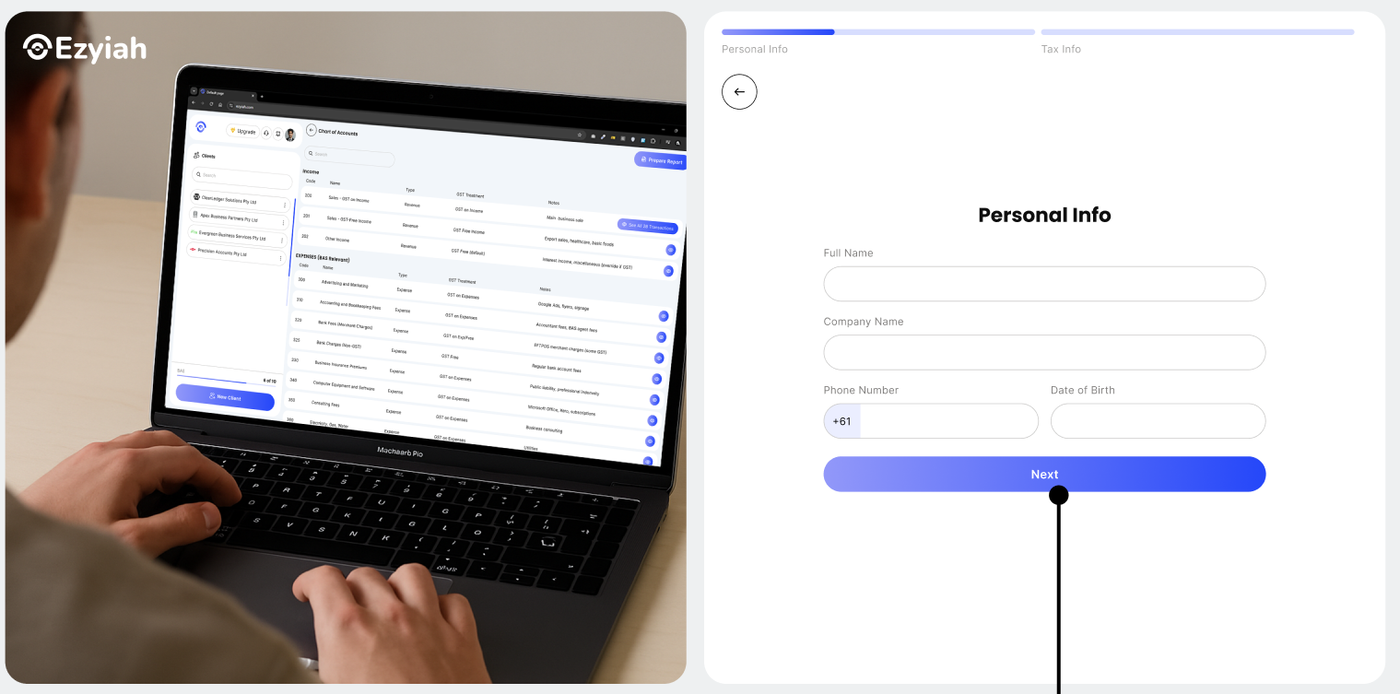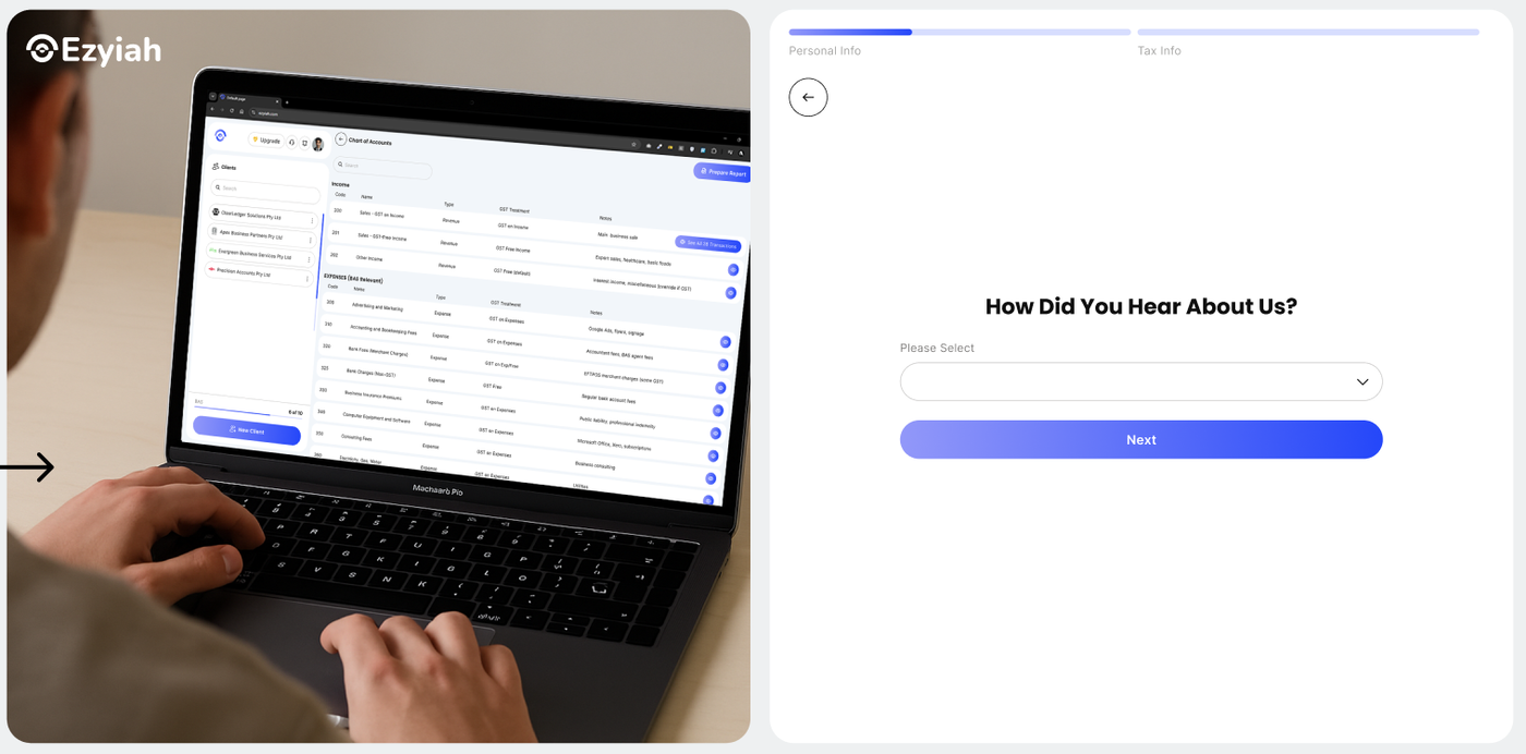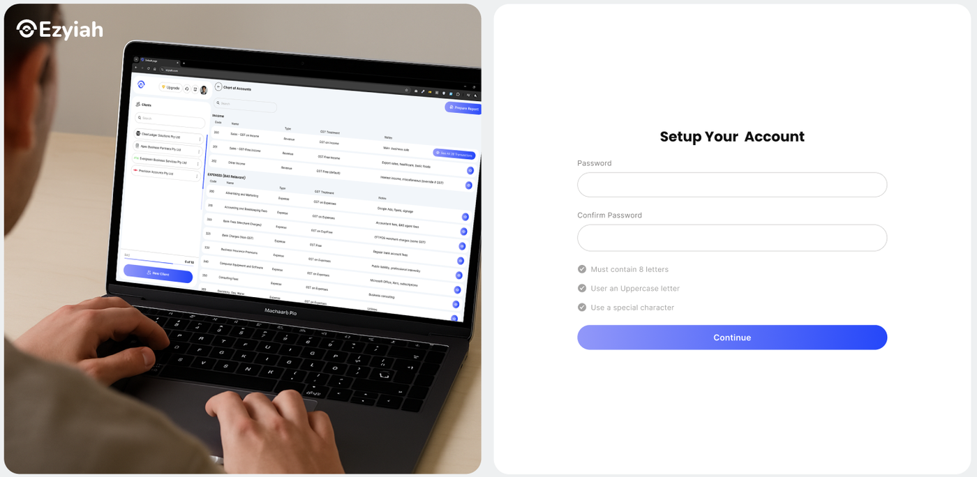 Select your professional title from the dropdown menu. This helps Ezyiah tailor the platform’s interface and permissions to suit your specific role within the accounting or bookkeeping firm.