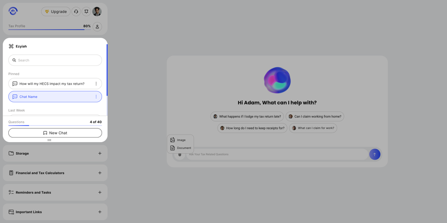 Creating a New Chat Adding a new chat in your dashboard is super easy! Here's how to do it: Log into your user dashboard. In the chat section, click on 'New Chat' which will prompt you with a brand new chat with Eziyah AI. Here's how it looks like: