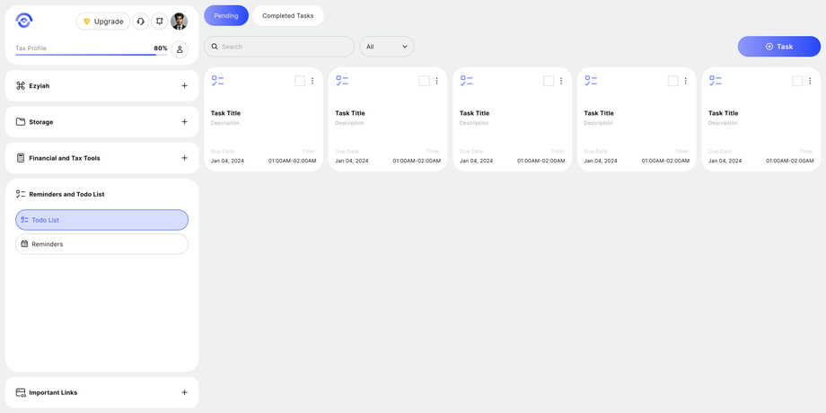 Open your Eziyah Dashboard and select the 'Todo List' Button in the Reminders and Todo List section within the sidebar.