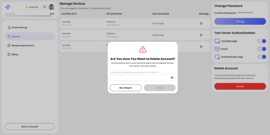 - Afterwards you'll get prompted with a popup asking for confirmation to delete your account, you'll need to enter in your password to confirm the deletion.