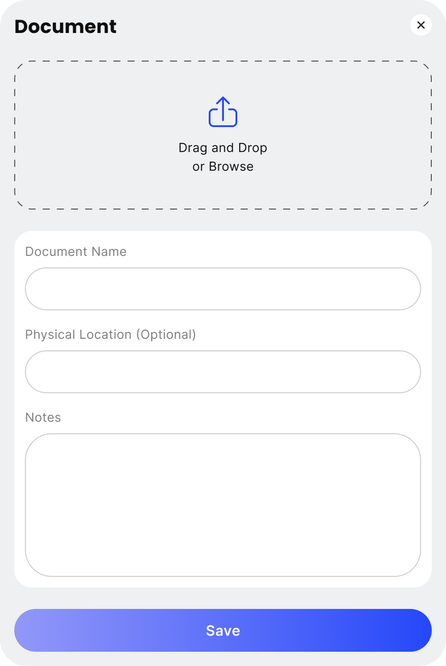 - Then you'll be prompted with a popup where you can replace the existing file with a new one and change the name, location and notes as you wish.