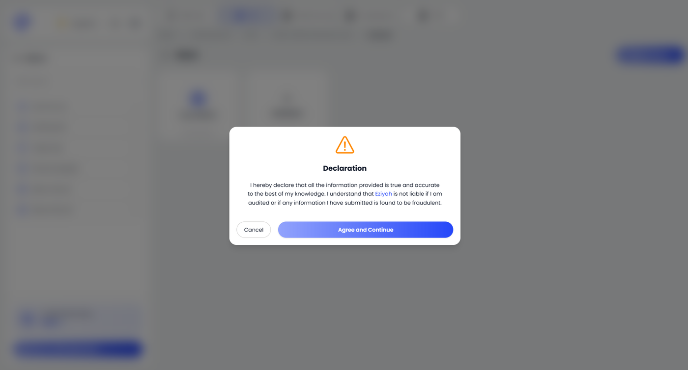 A Declaration popup will appear. Read the declaration carefully to confirm that all information provided is true and accurate.