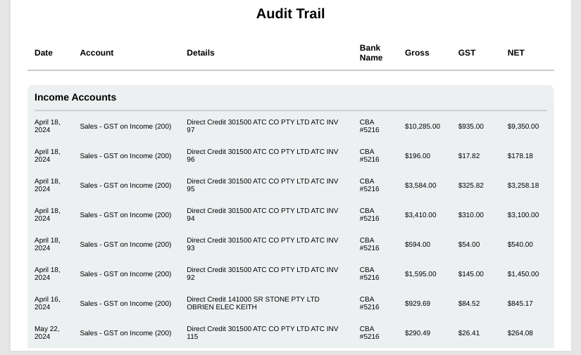 Review the Audit Trail below the summary to verify individual line items before clicking Download to export your final, branded report.
