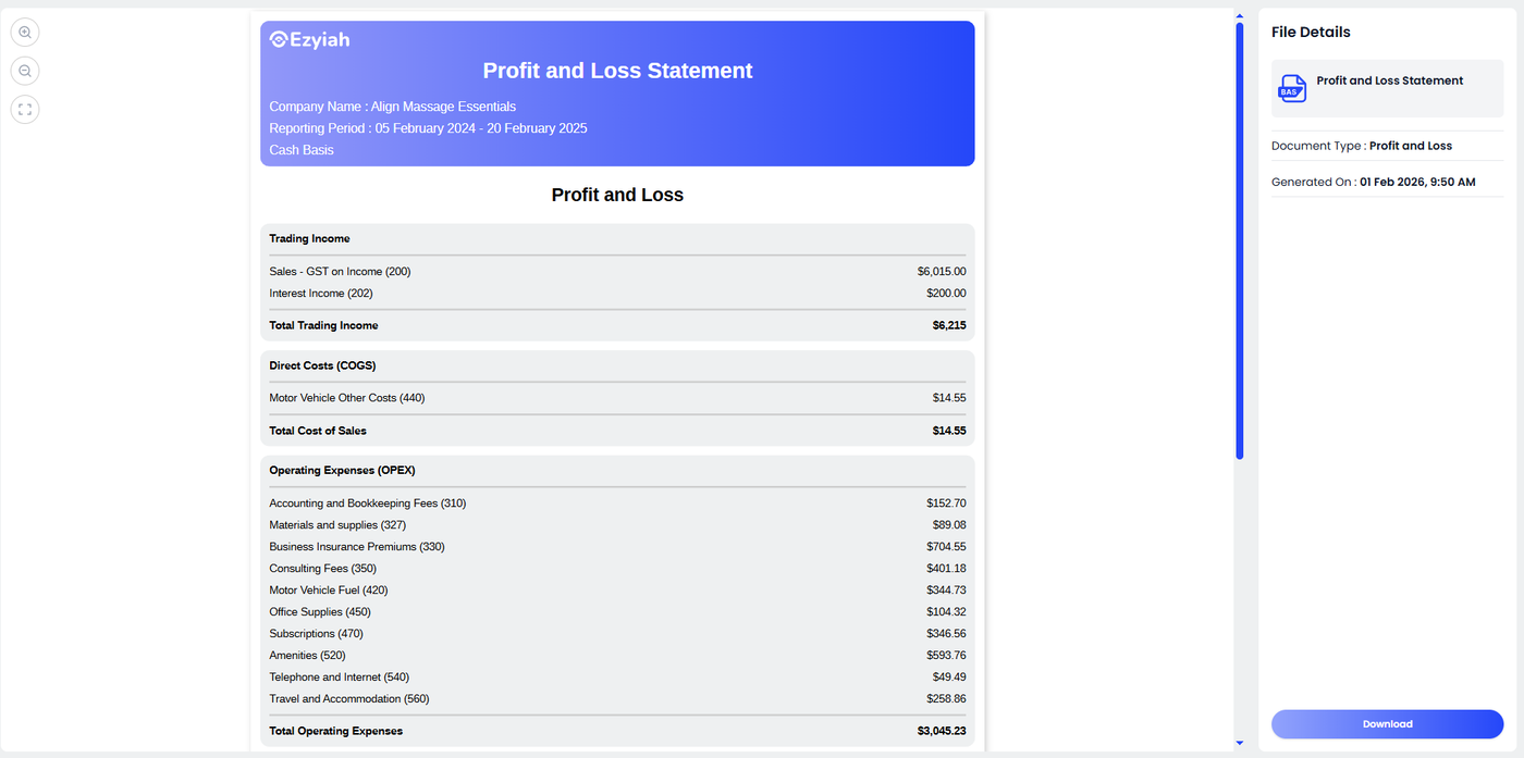 After the AI has analyzed your inputs, you can refine the display of your Profit and Loss statement to suit your reporting needs or client requests.