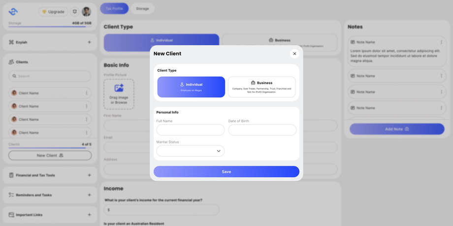 - Just fill in the client details and click the 'Save' button.