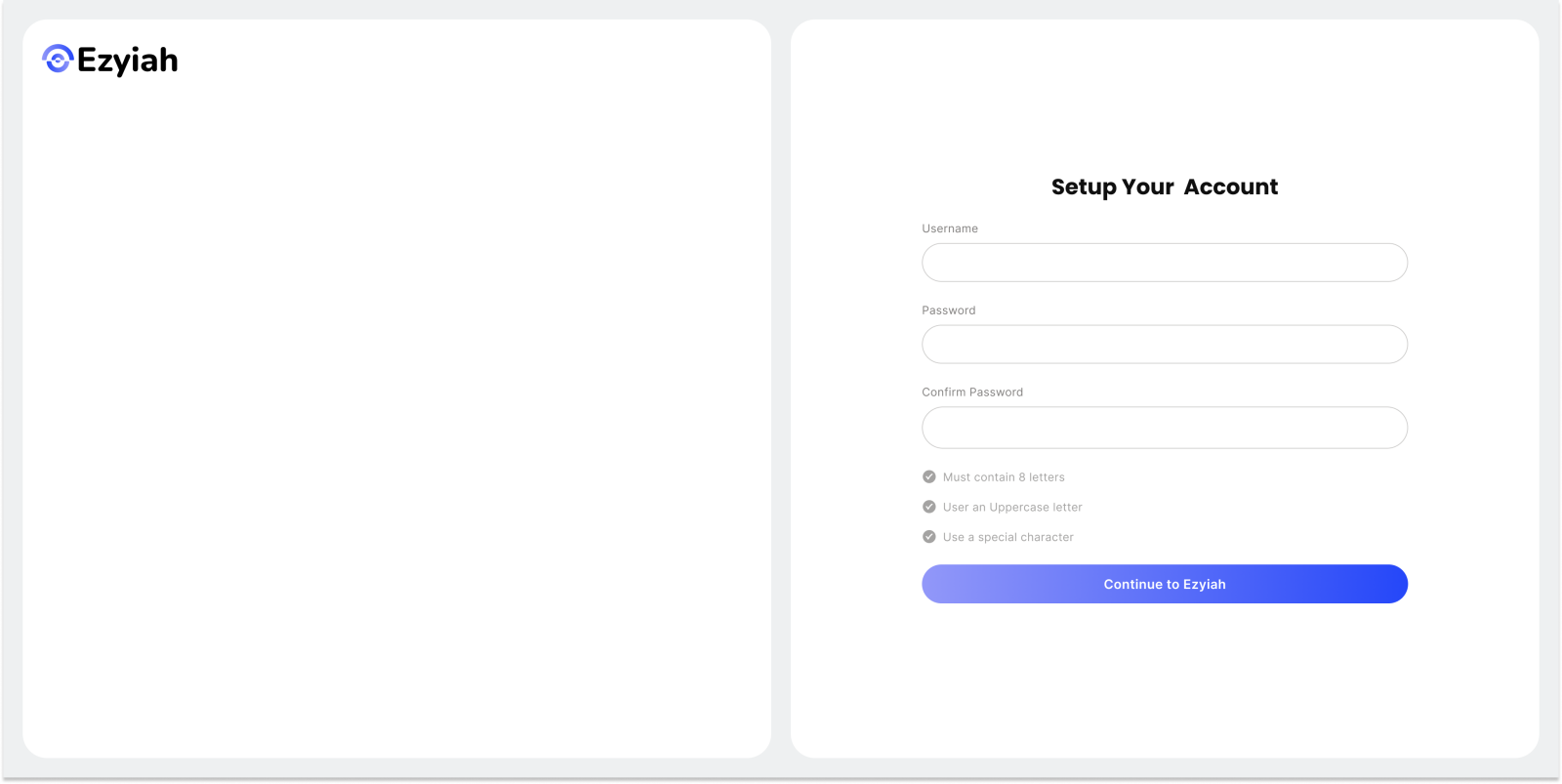 - Finally, you'll be asked to choose a username and password to confirm the creation of your Eziyah account!