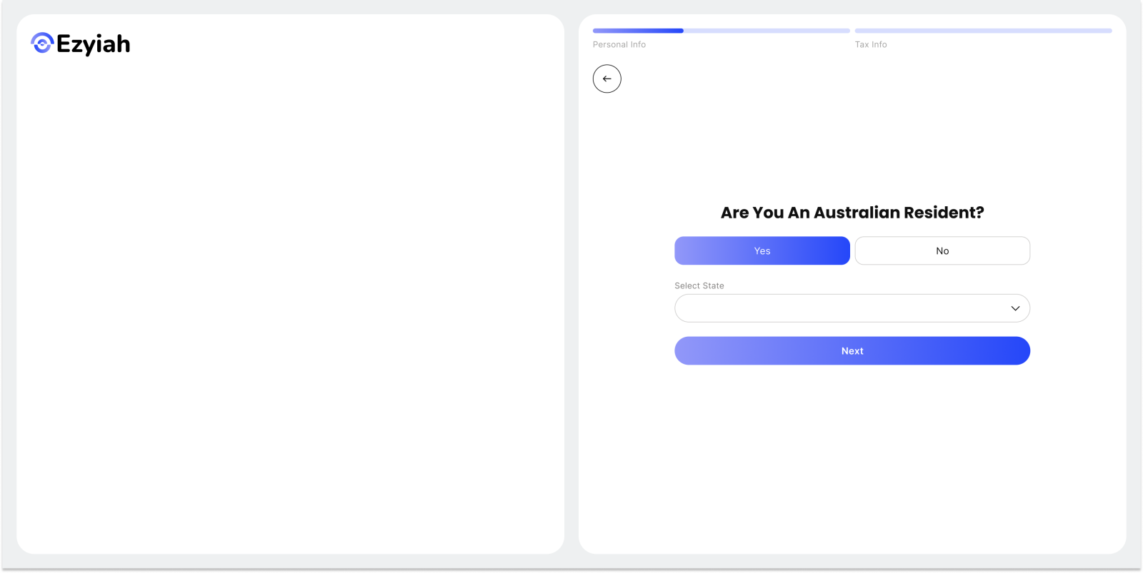 - After entering your details, you'll need to specify whether you're an Australian resident or not and which state you're based in.